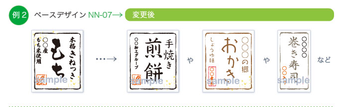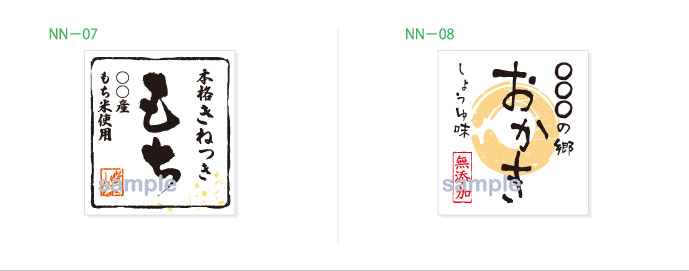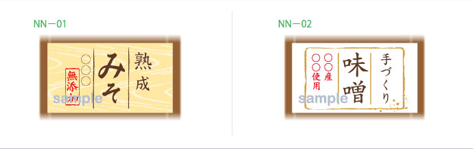 みそラベル、もろみラベル、もちラベル、おかきラベル、だんごラベル、まんじゅうラベル、巻き寿司ラベル、いなり寿司ラベル、鯖寿司ラベル、漬物ラベルなど様々なラベルにできます。